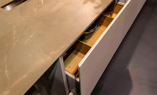 廚房臺面細(xì)節(jié)4:臺面水槽邊預(yù)留垃圾處理區(qū)。